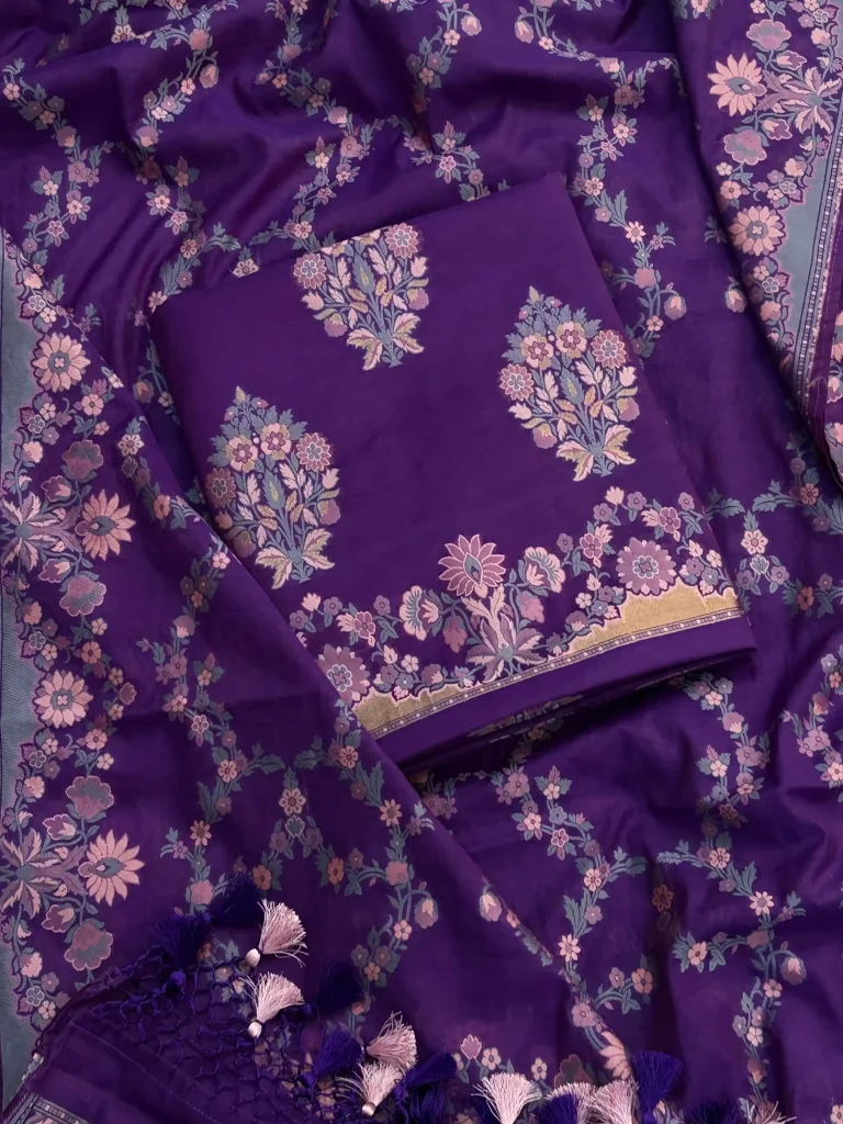 Top: Pure Chanderi Silk Booti Suit 2.5mtr each