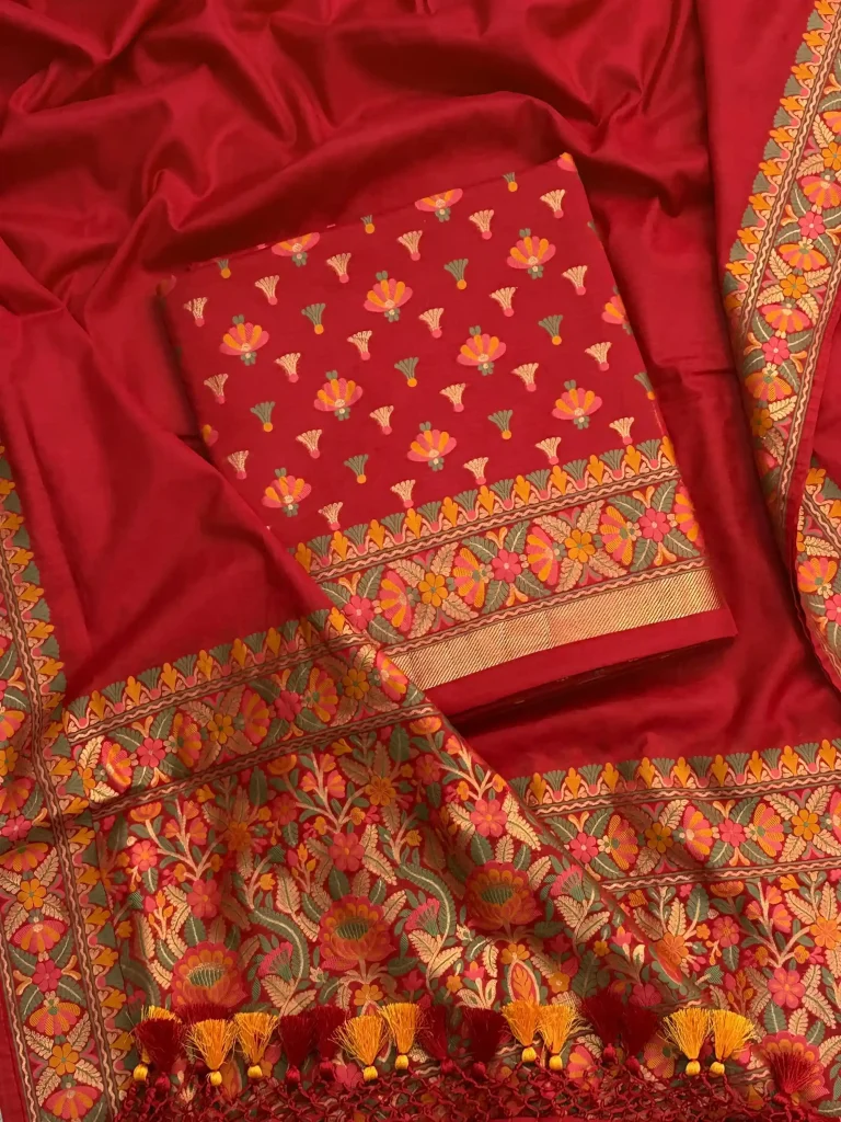 Top: Pure Chanderi Silk Booti Suit 2.5mtr each