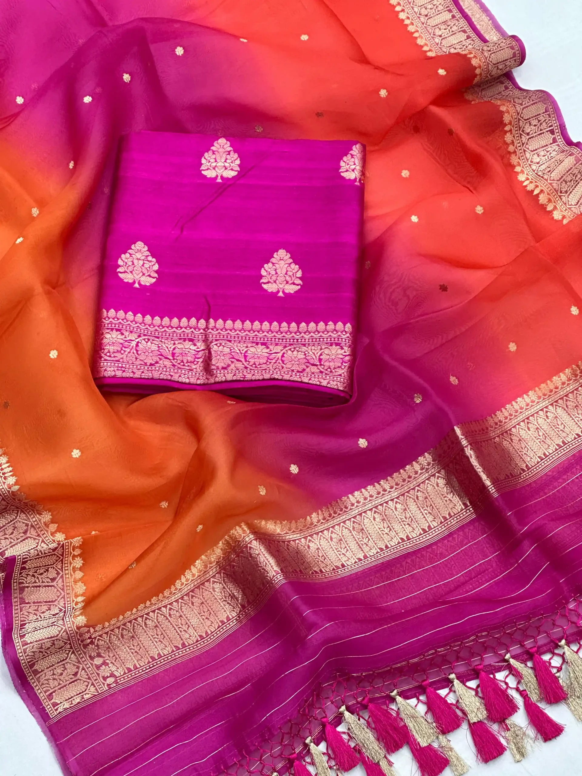 This is a handwoven, made-to-order creation, crafted using traditional Banarasi techniques.