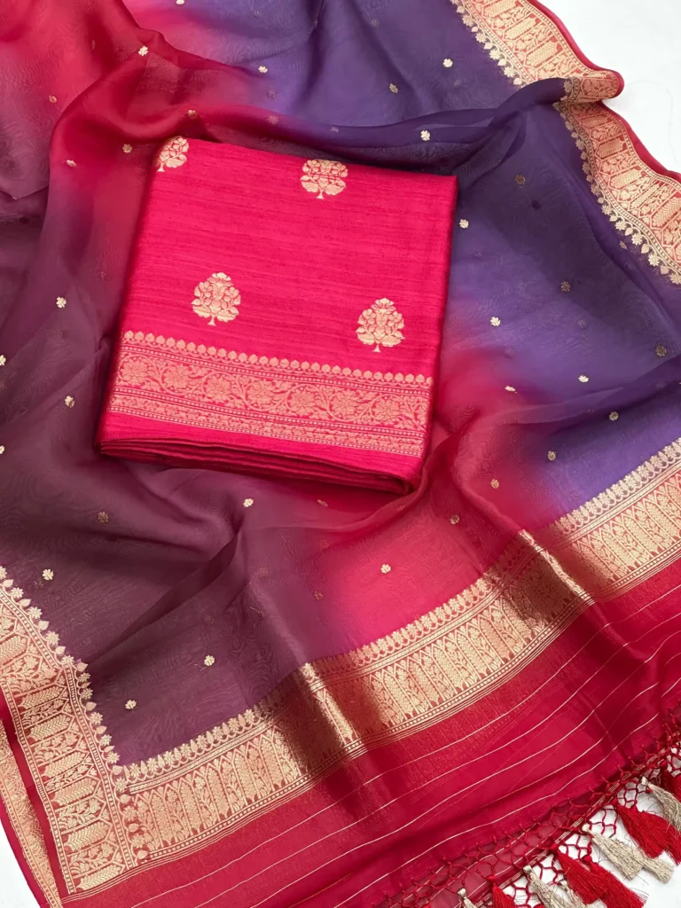 - Pure Banarasi Raw Silk Kadhwa Meenadar Suit