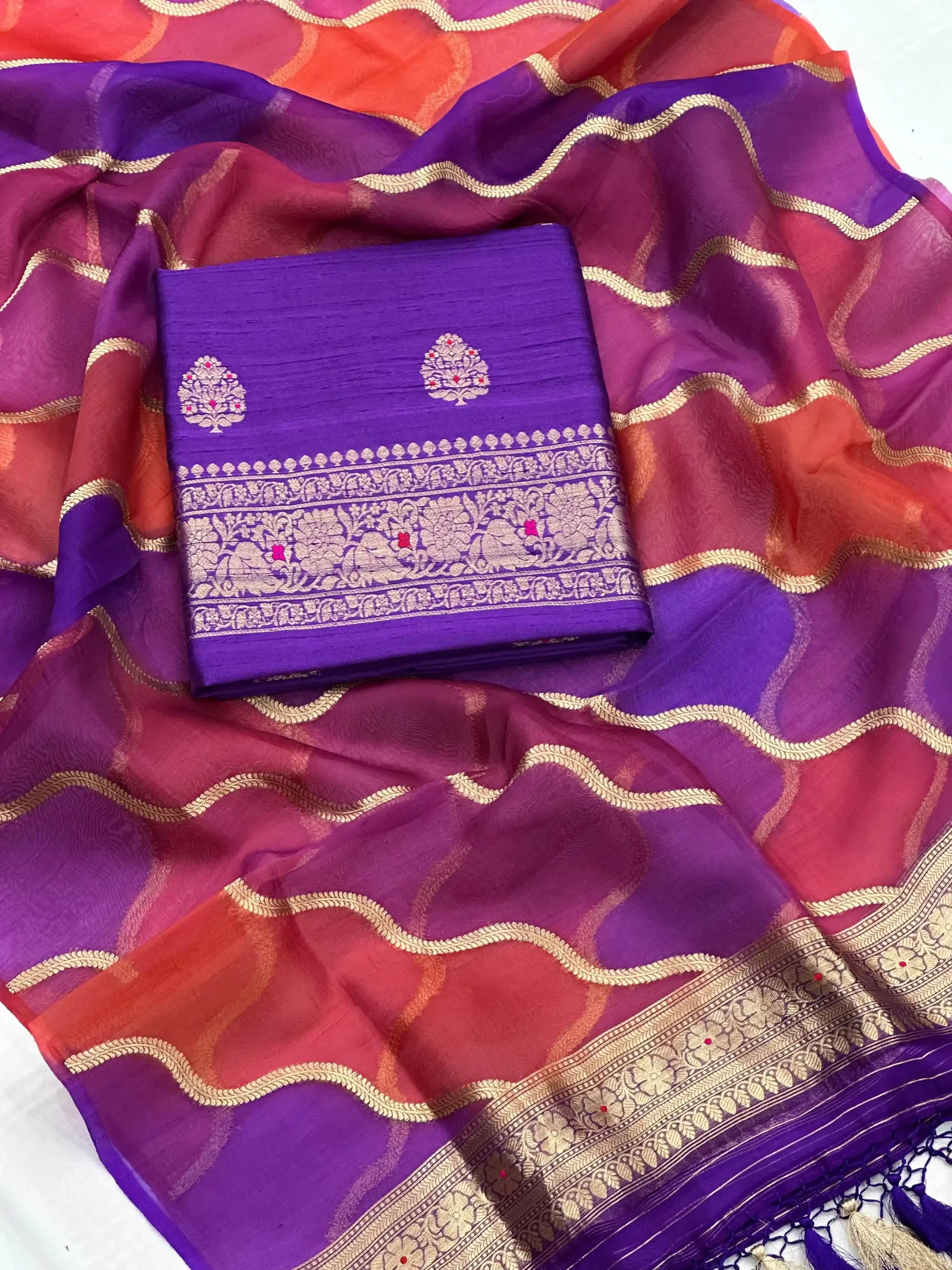 • Pure Banarasi Raw Silk Kadhwa Meenadar Suit
